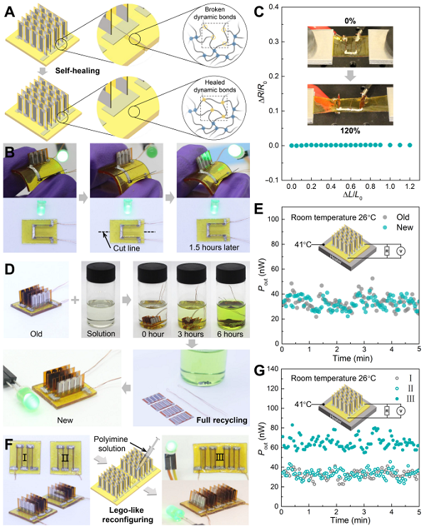 圖4 (A,B,C)自愈合、(D,E)可循環(huán)和(F,G)類樂高可重構的熱電器件