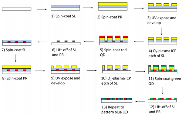 實驗物理學(xué)的長期挑戰(zhàn)之一是觀察室溫下超導(dǎo)性。近來,已經(jīng)在高壓下的幾種系統(tǒng)中報道了富氫材料中的高溫常規(guī)超導(dǎo)性。導(dǎo)致室溫超導(dǎo)的一個重要發(fā)現(xiàn)是硫化氫(H2S)到H3S的壓力驅(qū)動歧化,最終轉(zhuǎn)變溫度為155吉帕的203開爾文。 H2S和CH4都容易在較低壓力下與氫混合形成客體-主體結(jié)構(gòu),并且在4千兆帕斯卡下具有可比的大小。通過將甲烷低壓引入用于H3S的H2S + H2前驅(qū)體混合物中,分子交換成為一大批富含氫和 H2夾雜物的范德華固體的交換;在極端條件下,這些客體結(jié)構(gòu)成為超導(dǎo)化合物的基礎(chǔ)。羅徹斯特大學(xué)&英特爾報道了從元素前體開始的光化學(xué)轉(zhuǎn)變的碳?xì)浠蛱細(xì)浠锵到y(tǒng)中的超導(dǎo)性,在267±10吉帕斯卡下實現(xiàn)的最大超導(dǎo)轉(zhuǎn)變溫度為287.7±1.2開爾文。在金剛石砧室的寬壓力范圍內(nèi)(從140到275吉帕斯卡)觀察到超導(dǎo)狀態(tài),并且轉(zhuǎn)變溫度在220吉帕斯卡以上時急劇上升。根據(jù)Ginzburg的研究,零電阻,高達(dá)190吉帕的磁化率以及在高達(dá)9特斯拉的外部磁強(qiáng)和約62特斯拉的臨界磁強(qiáng)下降低轉(zhuǎn)變溫度,從而建立了超導(dǎo)性。氫的光,量子性質(zhì)限制了通過X射線散射技術(shù)對系統(tǒng)進(jìn)行結(jié)構(gòu)和化學(xué)計量的確定,但是拉曼光譜用于探測金屬化之前的化學(xué)和結(jié)構(gòu)轉(zhuǎn)變。在這里的三元系統(tǒng)中引入化學(xué)調(diào)節(jié)可以在較低壓力下保持室溫超導(dǎo)性。Room-temperature superconductivity in a carbonaceous sulfur hydride.(Nature, 2020, DOI:10.1038/s41586-020-2801-z)6.京東方Nano research:通過光刻方法制造的高分辨率、全色量子點發(fā)光二極管顯示器