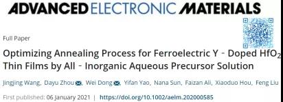 HfO2是一種簡單的二元氧化物,具有可集成到硅技術(shù)中的超尺度鐵電性。這種材料具有多型體的結(jié)構(gòu)特點(diǎn),其中,在超薄膜中發(fā)現(xiàn)的極性正交晶體(Pbc21)形式被認(rèn)為是鐵電性的可能起源,但通常認(rèn)為在塊狀晶體中無法實(shí)現(xiàn)。研究者使用最先進(jìn)的激光二極管加熱浮區(qū)技術(shù),實(shí)現(xiàn)了塊狀單晶HfO2:Y中的Pbc21相的合成與鐵電性觀測,并發(fā)現(xiàn)在不同Y濃度下存在反極性的Pbca相。中子衍射和原子成像顯示了(反)極性晶體學(xué)特征以及豐富的90°/ 180°鐵電疇,以及具有可忽略的喚醒效應(yīng)的可反轉(zhuǎn)的極化。DFT計(jì)算表明,釔摻雜和快速冷卻是穩(wěn)定所需塊體相結(jié)構(gòu)的關(guān)鍵。這項(xiàng)成果為HfO2的多型本質(zhì)和相控制提供了新的見解,并且消除了其鐵電性的尺寸上限,為下一代鐵電器件的開發(fā)開辟了新的方向。采用全無機(jī)鹽水溶液前驅(qū)體,通過化學(xué)溶液沉積法在Si(100)襯底上制備了10 nm厚的摻Y(jié) -HfO2薄膜。并研究了退火工藝(包括退火溫度,保溫時(shí)間和加熱速率)對薄膜的晶體結(jié)構(gòu)和鐵電性的影響。實(shí)驗(yàn)結(jié)果表明,薄膜的晶體結(jié)構(gòu)和鐵電性能同退火過程密切相關(guān)。此外,薄膜中共存單斜和不對稱的正交相。最優(yōu)鐵電性的退火工藝為:在N2氣氛中以30 °C?s-1的加熱速率在700 °C下退火30 s。 從而實(shí)現(xiàn)了薄膜的m相占比低至17.9%,并且具有最高的剩余極化強(qiáng)度(21.4 μC ?cm-2)。