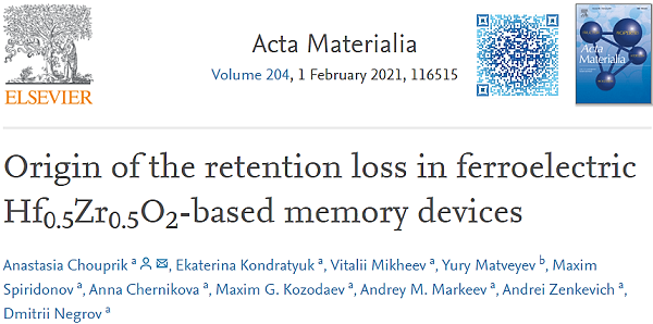 十年來,鐵電HfO2薄膜由于具有可縮放性和CMOS可集成性,因此作為一種可用于非易失性鐵電隨機(jī)存儲器的功能材料,得到了越來越多的關(guān)注。盡管在關(guān)鍵性能參數(shù)(尤其是讀出電荷和電壓以及耐用性)方面取得了顯著的進(jìn)步,但是所開發(fā)的器件只有在標(biāo)準(zhǔn)保留時(shí)間為10年的情況下才能實(shí)現(xiàn)電子工業(yè)的應(yīng)用。材料工程不僅可以改變鐵電性能,還可以修改保留時(shí)間。要了解如何保持足夠的保留時(shí)間,其背后的物理機(jī)制需要深入解讀。這項(xiàng)研究制造了具有高損耗保持率的電容器存儲單元。通過將器件性能與電容瞬態(tài)光譜法,動(dòng)態(tài)現(xiàn)場原位硬XPS和原位PFM的測試結(jié)果進(jìn)行比較,發(fā)現(xiàn)損耗保持是由電容器電極界面處帶正電荷的氧空位的積累引起的;在信息的長期存儲過程中,電荷的重新分配完全由存儲單元中的疇結(jié)構(gòu)定義。十年來,鐵電HfO2薄膜由于具有可縮放性和CMOS可集成性,因此作為一種可用于非易失性鐵電隨機(jī)存儲器的功能材料,得到了越來越多的關(guān)注。盡管在關(guān)鍵性能參數(shù)(尤其是讀出電荷和電壓以及耐用性)方面取得了顯著的進(jìn)步,但是所開發(fā)的器件只有在標(biāo)準(zhǔn)保留時(shí)間為10年的情況下才能實(shí)現(xiàn)電子工業(yè)的應(yīng)用。材料工程不僅可以改變鐵電性能,還可以修改保留時(shí)間。要了解如何保持足夠的保留時(shí)間,其背后的物理機(jī)制需要深入解讀。這項(xiàng)研究制造了具有高損耗保持率的電容器存儲單元。通過將器件性能與電容瞬態(tài)光譜法,動(dòng)態(tài)現(xiàn)場原位硬XPS和原位PFM的測試結(jié)果進(jìn)行比較,發(fā)現(xiàn)損耗保持是由電容器電極界面處帶正電荷的氧空位的積累引起的;在信息的長期存儲過程中,電荷的重新分配完全由存儲單元中的疇結(jié)構(gòu)定義。十年來,鐵電HfO2薄膜由于具有可縮放性和CMOS可集成性,因此作為一種可用于非易失性鐵電隨機(jī)存儲器的功能材料,得到了越來越多的關(guān)注。盡管在關(guān)鍵性能參數(shù)(尤其是讀出電荷和電壓以及耐用性)方面取得了顯著的進(jìn)步,但是所開發(fā)的器件只有在標(biāo)準(zhǔn)保留時(shí)間為10年的情況下才能實(shí)現(xiàn)電子工業(yè)的應(yīng)用。材料工程不僅可以改變鐵電性能,還可以修改保留時(shí)間。要了解如何保持足夠的保留時(shí)間,其背后的物理機(jī)制需要深入解讀。這項(xiàng)研究制造了具有高損耗保持率的電容器存儲單元。通過將器件性能與電容瞬態(tài)光譜法,動(dòng)態(tài)現(xiàn)場原位硬XPS和原位PFM的測試結(jié)果進(jìn)行比較,發(fā)現(xiàn)損耗保持是由電容器電極界面處帶正電荷的氧空位的積累引起的;在信息的長期存儲過程中,電荷的重新分配完全由存儲單元中的疇結(jié)構(gòu)定義。