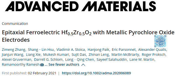 通過使用導(dǎo)電燒綠石氧化物電極作為結(jié)構(gòu)和化學(xué)模板來合成全外延鐵電Hf0.5Zr0.5O2(HZO)薄膜。以Pb2Ir2O7(PIO)和Bi2Ru2O7(BRO)為例,這些燒綠石表現(xiàn)出金屬導(dǎo)電性,其室溫電阻率<1 mΩ?cm,并且與氧化釔穩(wěn)定的氧化鋯襯底以及在其頂部生長的HZO層實(shí)現(xiàn)了緊密的晶格匹配。通過XRD和STEM確定了外延和疇形成的證據(jù),這些證據(jù)表明HZO薄膜的c軸垂直于襯底表面。當(dāng)HZO膜厚度大于等于約30 nm時(shí),可以觀察到從極性正交晶相中出現(xiàn)了非極性單斜相。熱力學(xué)分析揭示了外延應(yīng)變和表面能在穩(wěn)定極性相以及膜厚變化時(shí)共存非極性單斜相中的作用。