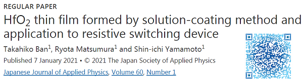 07.Japanese Journal of Applied Physics—溶液旋涂法制備HfO2薄膜及其阻變器件