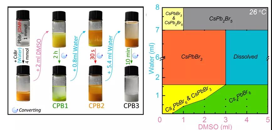 圖1. 水/DMF/DMSO三溶劑法合成各相銫鉛溴鈣鈦礦及高質(zhì)量Cs4PbBr6熒光晶體
