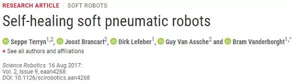 受許多生物體的啟發(fā),軟機(jī)器人幾乎完全由柔性軟材料制成,使其適合于不確定的動(dòng)態(tài)任務(wù)環(huán)境中的應(yīng)用,包括人機(jī)交互。它們固有的柔韌性可以吸收沖擊并保護(hù)它們免受機(jī)械沖擊。但是,用于其構(gòu)造的軟材料極易受到損壞,例如在操作中不受控制和不可預(yù)測的環(huán)境中存在的尖銳物體所造成的割傷和穿孔。針對該問題,比利時(shí)布魯塞爾自由大學(xué)的Bram Vanderborght團(tuán)隊(duì)利用了材料的自愈性能,構(gòu)造了軟機(jī)器人自修復(fù)彈性體,開發(fā)出了可自我修復(fù)的軟氣動(dòng)執(zhí)行器的三種應(yīng)用:軟夾持器,軟手和人造肌肉。該材料中熱可逆的共價(jià)網(wǎng)絡(luò)使其具有治愈微觀和宏觀損傷的能力,而且在損傷處,沒有弱點(diǎn)形成,并且執(zhí)行器的全部性能在愈合后幾乎完全恢復(fù)。