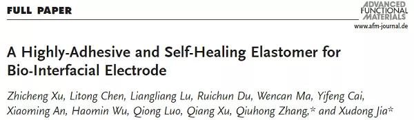 柔性可拉伸電極在可穿戴電子領(lǐng)域中具有廣泛的應(yīng)用。近年來,隨著醫(yī)療器械的發(fā)展,人們對可拉伸電極材料的功能性要求也越來越高。如用于監(jiān)測生物電信號(hào)的電極材料不僅需要優(yōu)異的彈性和導(dǎo)電性,還需要和生物界面具有優(yōu)異的粘附性來保證信號(hào)的穩(wěn)定性。目前所采用的電極所采用的基體材料通常采用硅橡膠類彈性體,這類聚合物在具有高彈性的時(shí)候并不能具備粘附性。因此制備一種本身具有粘性的彈性體具有重要的意義。針對這一問題,南京大學(xué)化學(xué)化工學(xué)院張秋紅副教授、賈敘東教授課題組將帶有二羥基的多巴胺基團(tuán)引入到以聚四氫呋喃醚基聚氨酯體系中,利用體系內(nèi)的動(dòng)態(tài)氫鍵和多巴胺間相互作用,制備了一種新型的“粘”彈體(斷裂形變5100%,斷裂強(qiáng)度1.9 MPa,粘附強(qiáng)度62 kPa)。