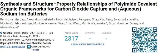 4. Chem.Mater.:聚酰亞胺共價有機框架的合成及在CO2捕獲和水系鈉離子電池應用中的結構-性能關系