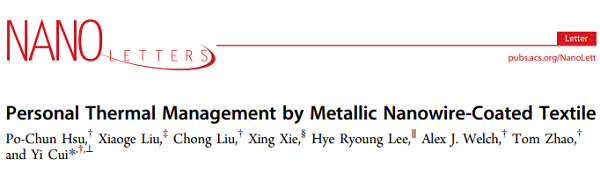 1. 斯坦福大學(xué)崔屹Nano Lett.: 金屬納米線涂層紡織物用于個人熱管理