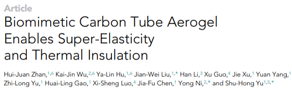 8. 中科大俞書宏院士Chem: 仿生碳管氣凝膠實現(xiàn)超彈性和隔熱
