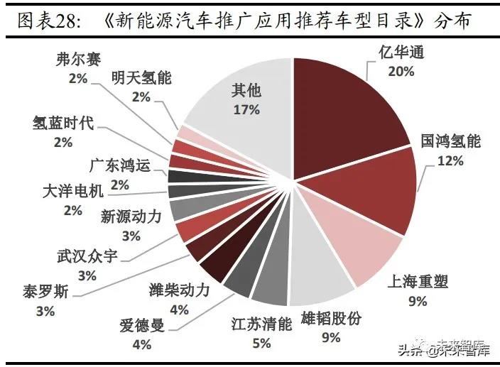 氫燃料電池汽車產(chǎn)銷數(shù)據(jù)的增長潛力有望在下半年爆發(fā)。因為氫燃料電池全產(chǎn)業(yè)鏈 一般在第一、二季度與下游廠商商討技術(shù)方案、制定商務(wù)合同、訂單備貨,第三季度 采購生產(chǎn)第四季度確認(rèn)交付。若“十城千輛”政策在三季度能順利落地,2021年氫燃 料電池汽車有突破1萬輛的潛力。從車型來看,氫燃料客車與重卡將占據(jù)2021年氫燃 料電池汽車市場的主要份額。這主要是由于2021年我國將為2022年北京冬奧會做準(zhǔn) 備,我們預(yù)計氫燃料重卡將在2021年下半年開始逐步落地進行示范運營。