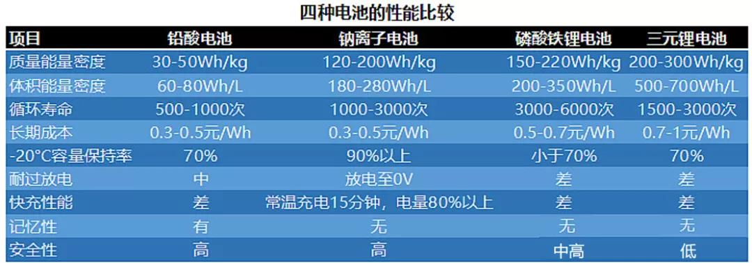 上面的表格,就是鈉離子電池與鉛酸電池、磷酸鐵鋰和三元鋰電池的性能比較??偨Y(jié)來說就是,鈉離子電池,既有磷酸鐵鋰的高能量密度,又有著鉛酸電池的低價格。所有磷酸鐵鋰和鉛酸電池的優(yōu)點,他都有。