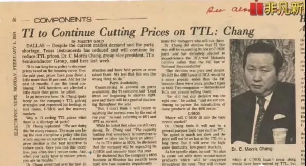 將近50年前,1974年2月,我在德州儀器的時候用過一個策略叫“持續(xù)降低TTL的價格”(TI to Continue Cutting Prices on TTL:Chang),看上去兇哈哈的樣子。事實上,這個策略非常成功。為什么?當時TTL(Transistor-Transistor-Logic,晶體管-晶體管邏輯電路 ) 是一種非常受歡迎的商品。