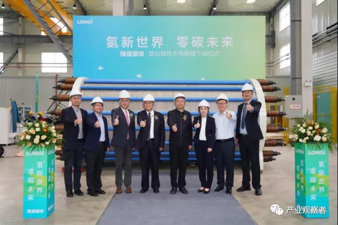 自今年3月隆基成立氫能公司以來,電解槽成為今年投資領(lǐng)域關(guān)注的重點(diǎn),10月16日,隆基氫能首臺(tái)堿性水電解槽下線,公司當(dāng)天宣布今年將具備500MW的能力,未來五年內(nèi)產(chǎn)能將達(dá)到5-10GW。