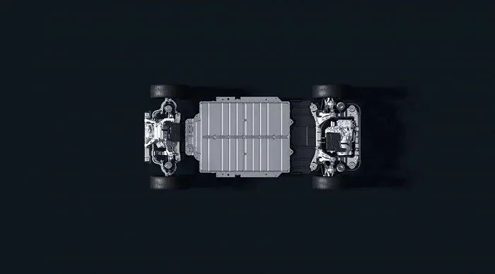 全新的電池包采用無模組設(shè)計,大約由960個(40x24)“