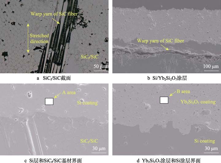 圖 6 SiCf/SiC 復合材料和 Si/Yb2Si2O7 涂層的截面顯微結(jié)構