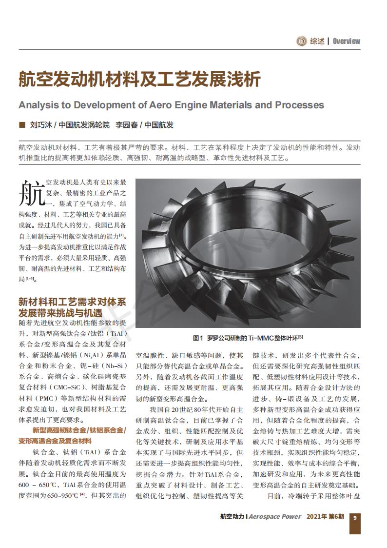 航空發(fā)動(dòng)機(jī)材料及工藝發(fā)展淺析