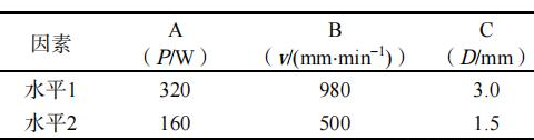 金屬材料表面吸收光能的效率主要取決于材料的表面狀態(tài),經過機械加工后的模具,其表面粗 糙度很小,其反射率高達 80%~90%。通常用磷化法、噴涂涂料法對金屬表面進行預處理,以提高 金屬表面對激光的吸收效率。通過磷化法可以在材料表面生成均勻、細致的磷化酸金屬鹽磷化膜,其對材料表面的影響較小。噴涂涂料法是在金屬表面涂上能夠很好吸收激光的涂層,在高功率激光的照射下,涂層具有很好的熱穩(wěn)定性,且導熱性高。 噴涂法工藝在金屬表面預處理中具有更大的優(yōu)越 性,主要是涂料價格低廉、容易清除,在涂敷及激 光處理過程中,不會對環(huán)境產生污染[44]。例如納米 氧化物涂料,在溫度達到 873 K 時仍能保持高而穩(wěn)定的吸收率,通常納米氧化物涂料對 CO2 激光吸收 率達 93.57%。 模具表面的顯微硬度、耐磨性與材料的顯微結構、晶粒大小、表面狀態(tài)等因素有關,而這些因素直接受到工藝參數的影響,吸收激光能量的程度最 終決定淬火后的組織性能。主要工藝參數有:激光輸出功率(P)、掃描速度(v)和作用在材料表面 上的光斑尺寸(D)。三個參數對激光淬火后的硬 化層深度(H)的影響關系式為: H∝P/(D×v) (1) 由式(1)可知,激光相變硬化層的深度與激 光輸出功率成正比,與掃描速度和作用在材料表面 上的光斑尺寸成反比。而且材料對激光的吸收率隨 著溫度的升高而增加,關系式為 TT=T20 ℃[1+ U(T20)],其中 TT 為材料對激光的吸收率,T20 ℃ 為室溫條件下材料的吸收率,U 為常數,T 為材料 的溫度。為了使激光淬火效果達到最佳,必須考慮 P、v、D 等因素影響,為了簡化試驗量,可以通過 正交試驗法分析各參數之間的相關性。江蘇廣播電 視大學吳健[46]對 4Cr13 不銹鋼進行了正交試驗,結果見表 1。