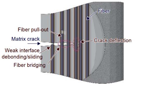 材料的失效類型主要包括斷裂、腐蝕和磨損等。 SiC/SiC 復(fù)合材料的失效主要表現(xiàn)為在載荷、高溫、異物沖擊、氧化、摩擦等單因素或多因素作用下發(fā)生的斷裂、腐蝕和磨損。 SiC/SiC 復(fù)合材料具有多種組分,每種組分相比 SiC 或六方氮化硼(h-BN)等純陶瓷材料有很大的不同,不同組分可以多種方式組成復(fù)合材料,因此 SiC/SiC 復(fù)合材料具有因材料組成和制備工藝而異的失效行為。同時,SiC/SiC 復(fù)合材料的服役環(huán)境十分復(fù)雜,已開展了很多高溫水氧或燃氣環(huán)境下的長時力學(xué)實驗,研究 SiC/SiC 復(fù)合材料在力、熱、水、氧以及高速氣流等綜合作用下的損傷演化和失效機理,以達到監(jiān)測 SiC/SiC 復(fù)合材料性能衰減并預(yù)測其剩余服役壽命的目的。由于 SiC/SiC 復(fù)合材料磨損失效行為的專門研究還比較少,本文重點討論 SiC/SiC復(fù)合材料的斷裂失效和腐蝕失效。