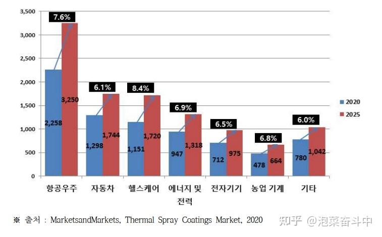 讓我們定睛來看一下,雖然等離子熱噴涂的全體市場(chǎng)占比不是最高的,但是它的增速卻是所有噴涂方法中最快的。達(dá)到了11.2%。