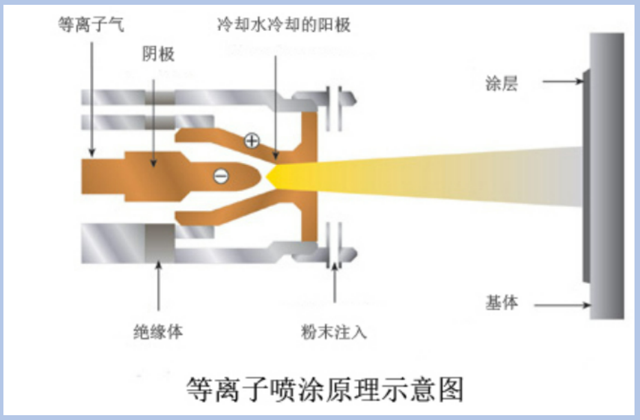等離子噴涂是采用剛性非轉移型等離子弧為熱源,將欲噴涂粉末材料加熱到熔融或半熔融狀態(tài),在經過高速焰流將其霧化加速噴射到經預處理的工件表面,形成噴涂涂層的一種熱噴涂表面加工方法。