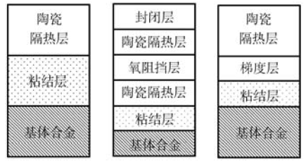 圖5 雙層、多層和梯度熱障涂層結(jié)構(gòu)示意圖